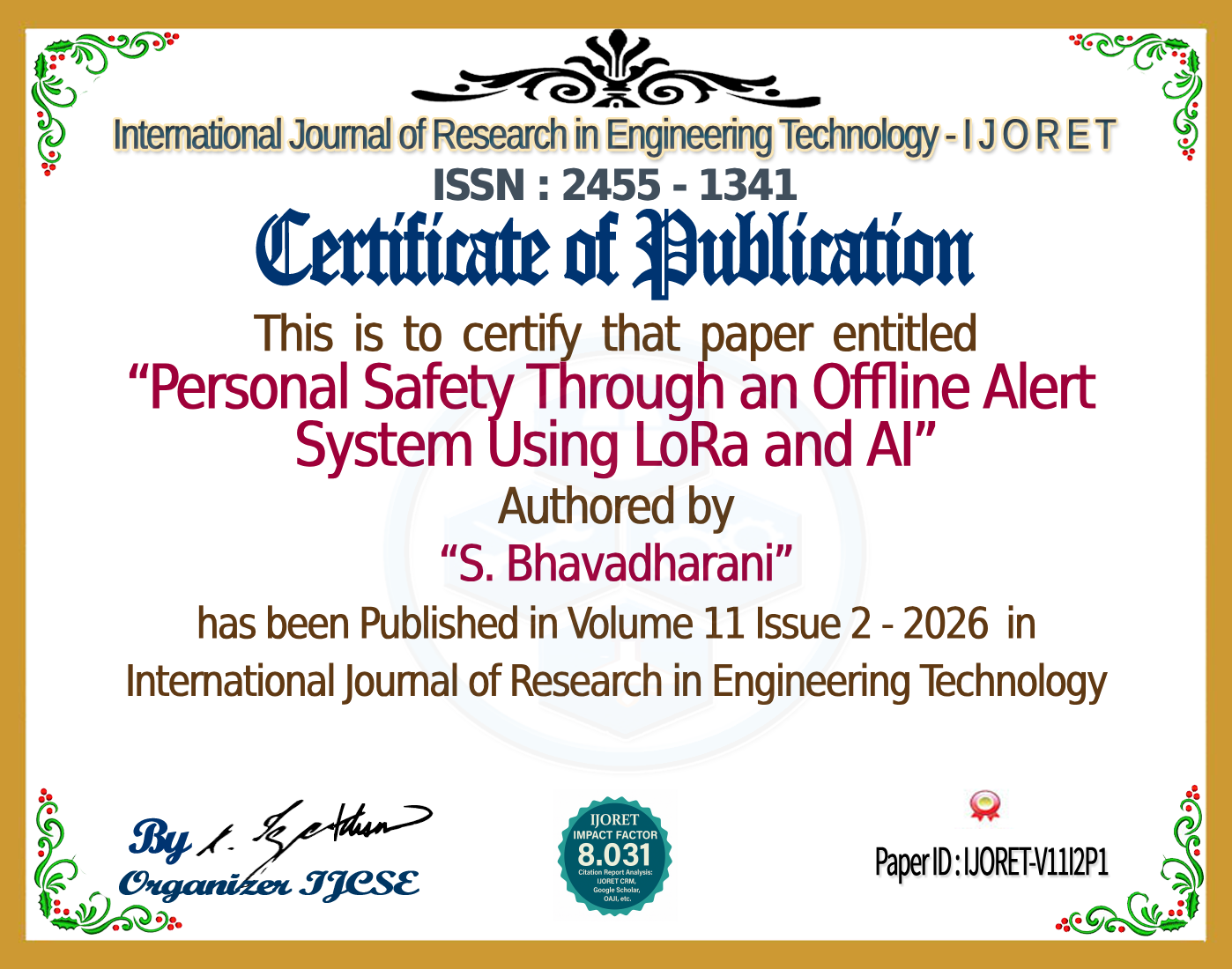 Personal Safety Through an Offline Alert System Using LoRa and AI | IJORET | Volume 11- Issue 2 | IJORETV11I2P1
